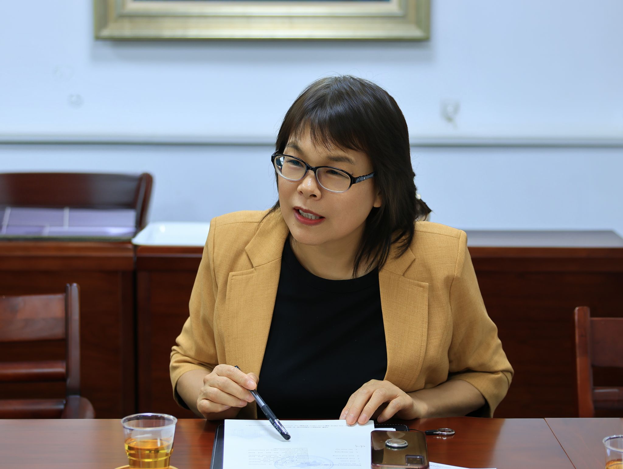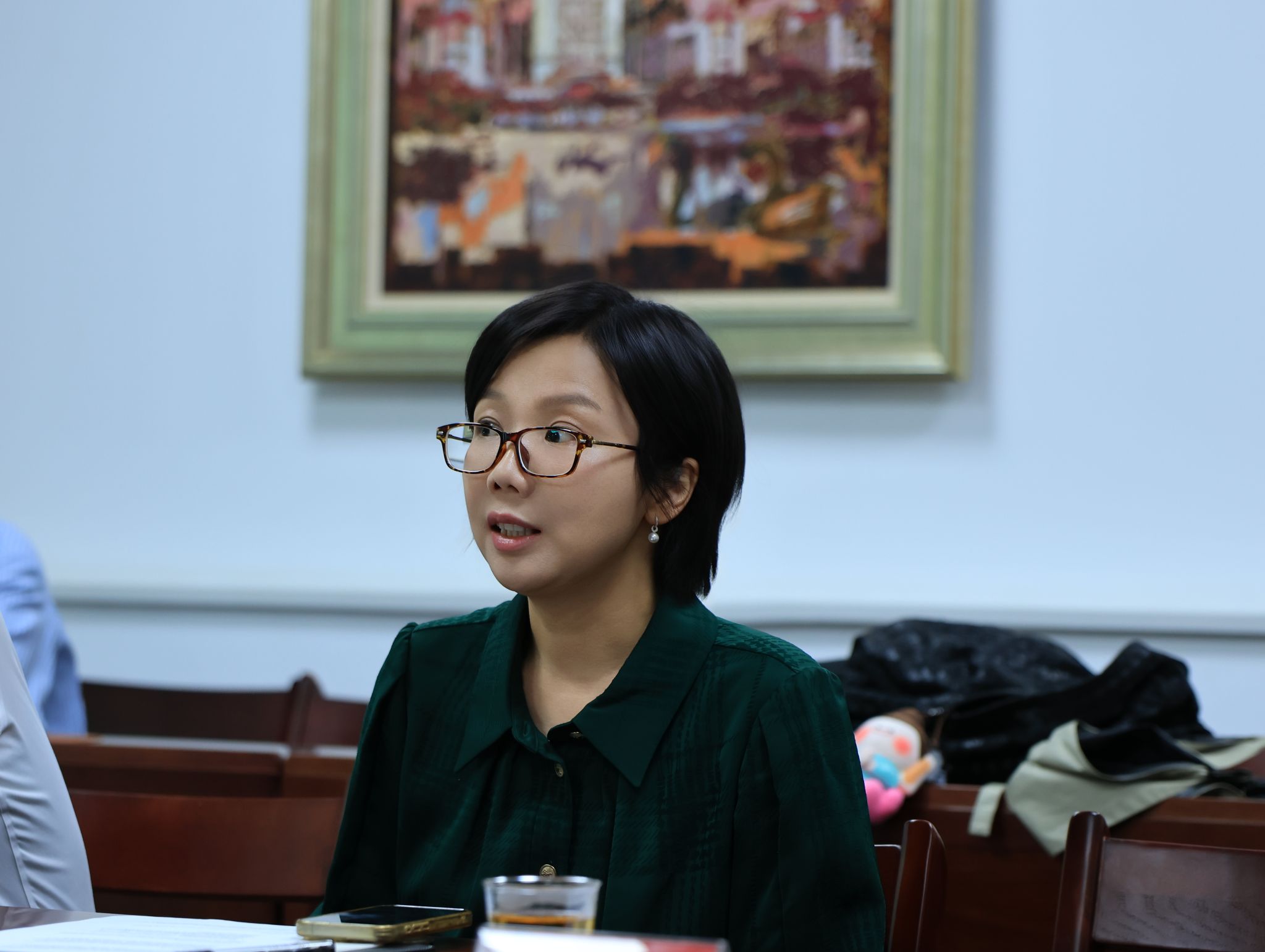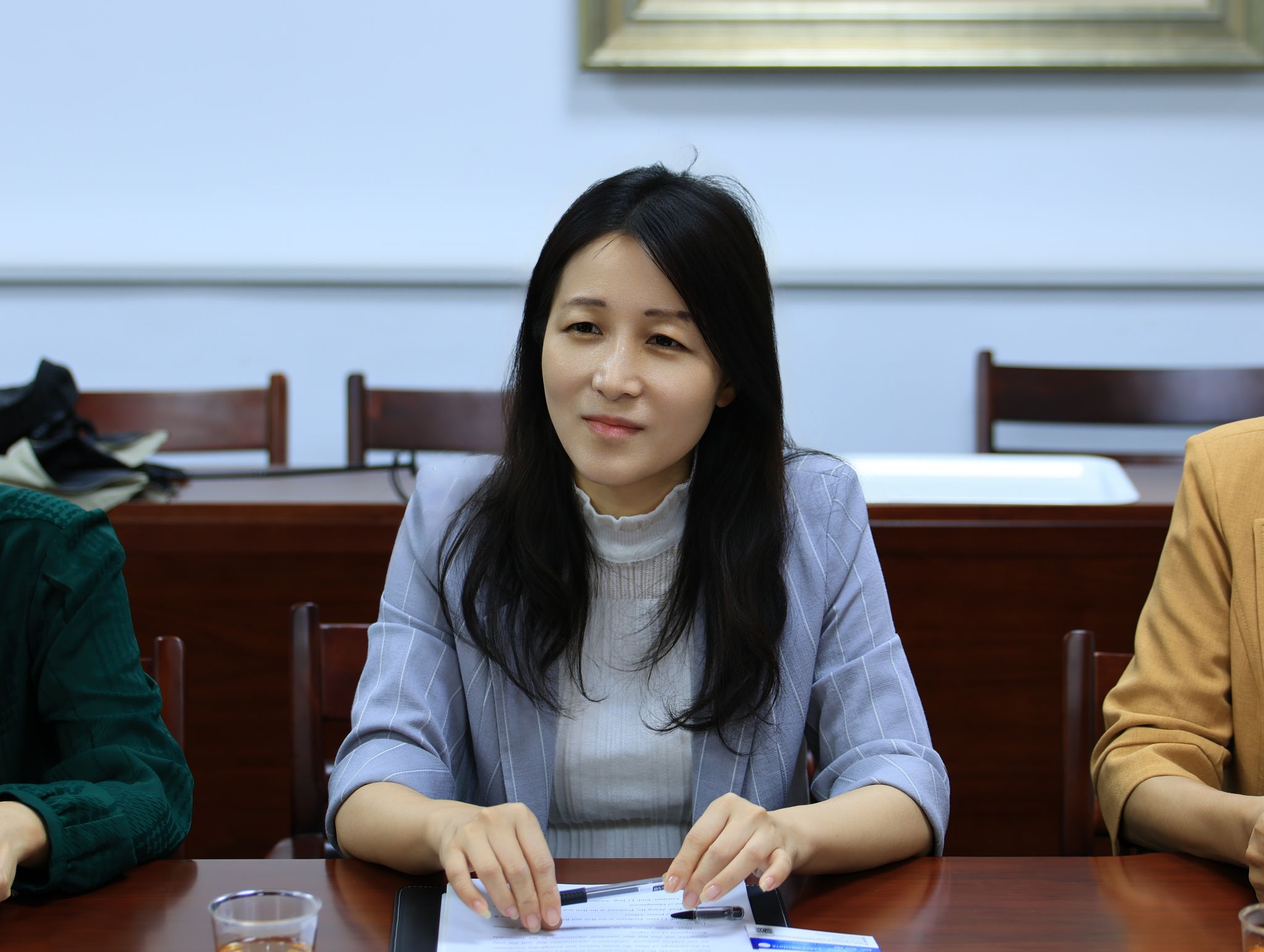 在交流讨论环节,张博教授、李丹教授、李晶老师围绕能源经济领域联合研究、中亚学院学者访问项目机制、知识产权硕士项目在中亚地区推广等议题与两位嘉宾进行了深入探讨交流。