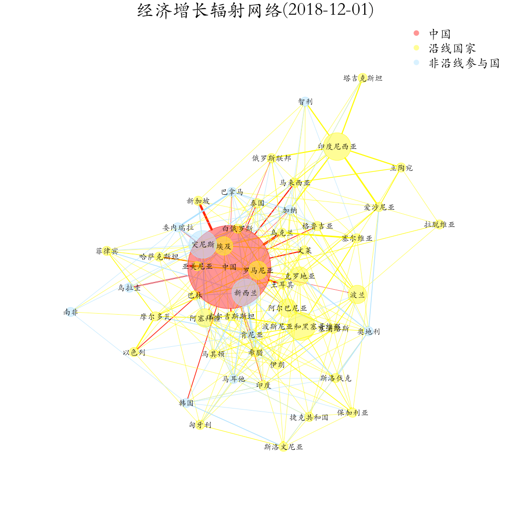 图1 “一带一路”倡议前沿线国家和参与国经济增长相互影响网络
