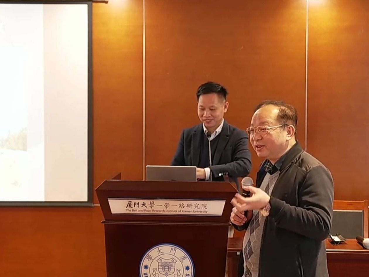 2022年12月15日上午,厦门大学社会与人类学院特聘教授、副院长张先清老师在一带一路研究院报告厅做了题为“重组‘海丝’遗产——中国的地方实践与意义表述”的学术讲座。本场讲座由一带一路研究院常务副院长陈武元教授主持,通过厦大群贤平台在线上同步直播。