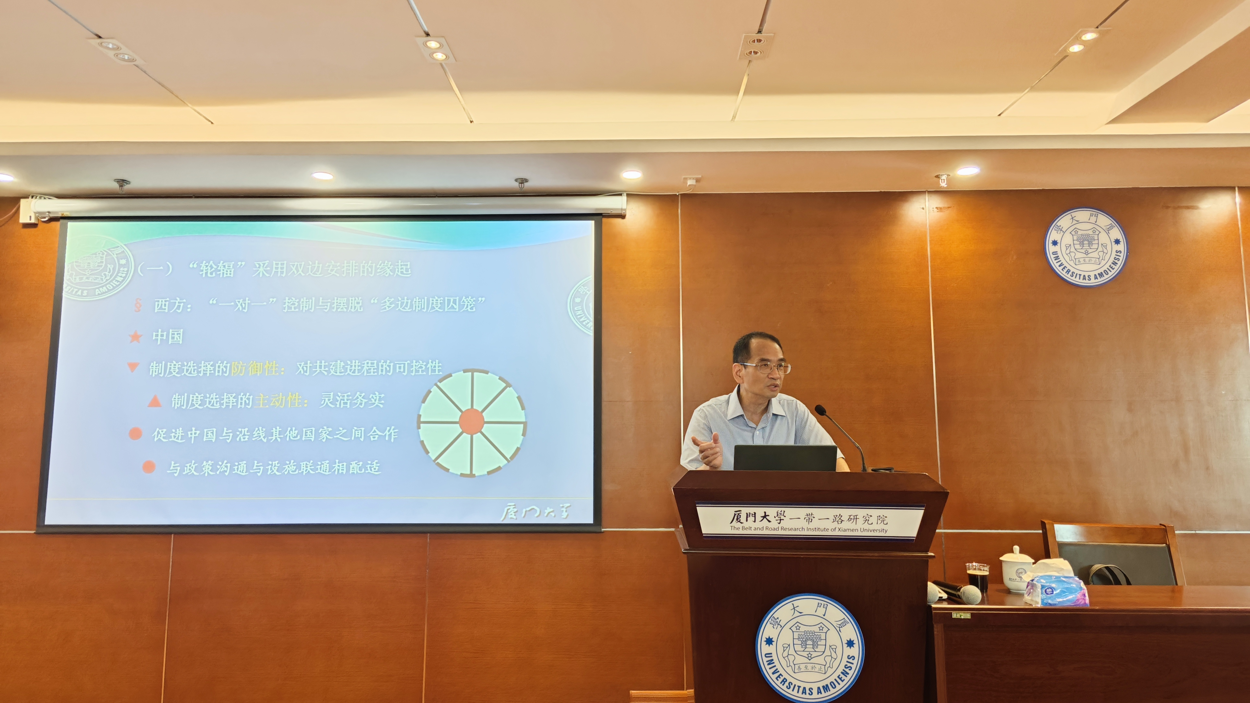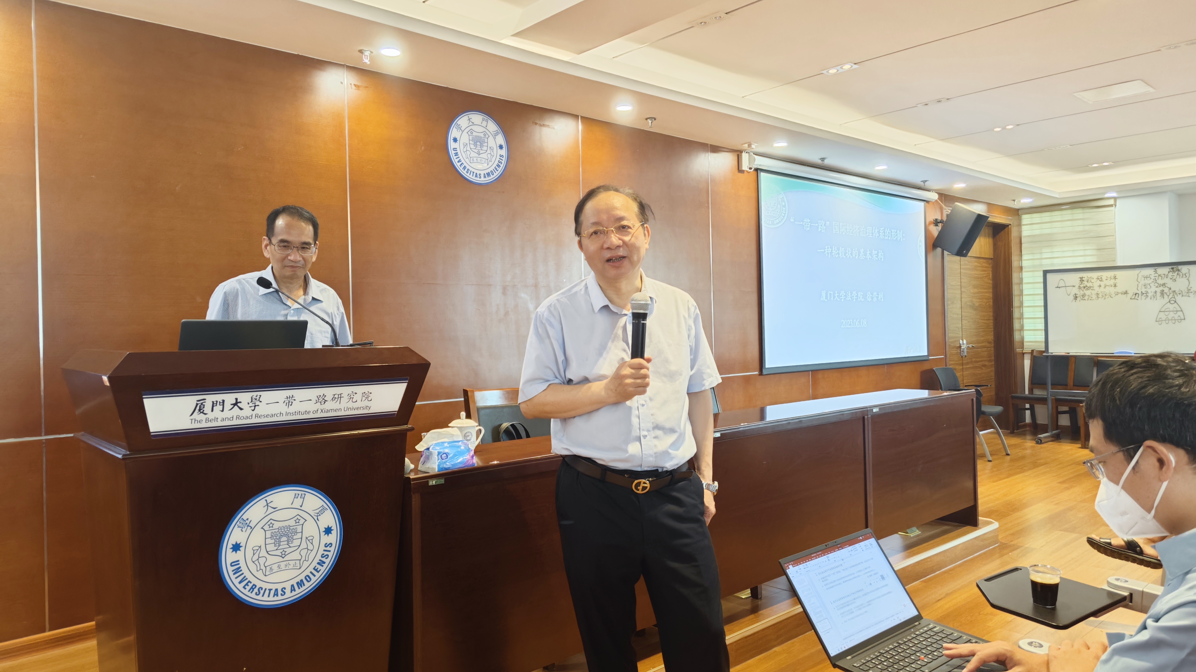 2023年6月8日上午,厦门大学法学院特聘教授徐崇利在厦门大学一带一路研究院做了题为“‘一带一路’国际经济治理体系的形制——一种轮毂状基本结构”的学术讲座。本场讲座由厦门大学一带一路研究院常务副院长陈武元教授主持。讲座采用线上线下相结合的方式,在厦大群贤视频号上同步直播。