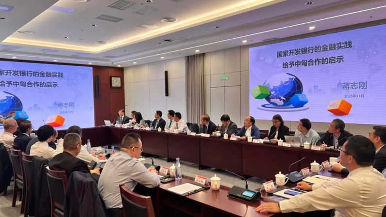 蒋志刚率先发言,他通过介绍国家开放银行的金融实践,为中匈合作提出了一系列实操性建议。他指出,国家开发银行自成立以来,走出了一条中国特色的开发性金融道路,逐渐形成了开发性金融中“融智+融资”的两融创新模式。他强调,中匈规划合作可以从国家开发银行的建设实践汲取经验,为接下来的具体合作框架、合作内容和合作步骤提供有益的指导。