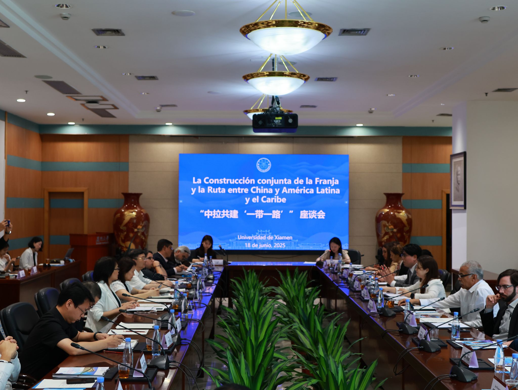 2025年6月18日上午,由来自拉美地区19个国家的专家学者组成的拉美国家高端智库学者团一行访问我校,并与学校一带一路研究院(“研究院”)举行“中拉共建‘一带一路’”主题座谈会。研究院人类命运共同体研究中心负责人、公共事务学院教授李丹主持会议,国际关系学院教授吴崇伯、知识产权研究院教授林秀芹、中国能源政策研究院教授张博、国际关系学院助理教授李峰作为研究院兼职研究员代表参与了本次座谈。外交部拉美司参赞、二级巡视员杨世俊出席本次活动。