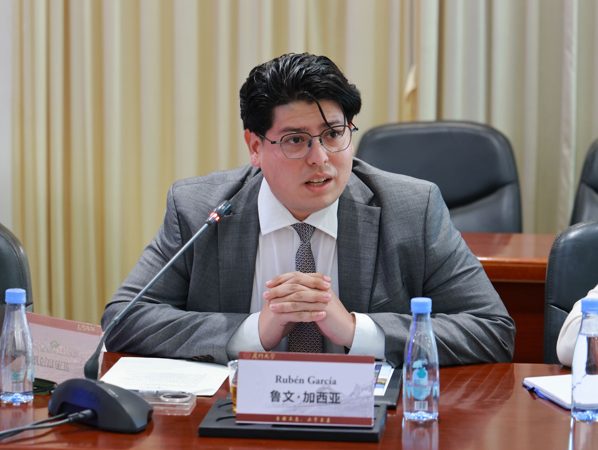 来访专家对学校的热情接待表示感谢,并结合本国国情和自身专业领域发表了观点。玻利维亚学者鲁文·加西亚认为,中国与拉丁美洲的国际贸易是推动经济与社会发展的重要引擎,中拉在知识、技术层面合作共享有助于拉美地区实现自主生产,降低对外依赖性。厄瓜多尔学者西尔维娅·埃雷拉提到,中国如今在国际经贸体系中具有举足轻重的地位,双方在开展基础设施的绿色投资与可持续投资等方面还有巨大的发展空间。墨西哥学者阿道夫·拉博得提出,“一带一路”倡议与墨西哥提出的“波奇特卡之路”可有效衔接,双方应积极推动高等教育层面的常态化交流往来。尼加拉瓜学者埃德温·马德里加尔认为,“一带一路”倡议是一个关于公平、非强制性合作和共同发展的承诺,拉美各国人民从中看到了历史性的变革机遇,并希望加强与中国高校的合作。