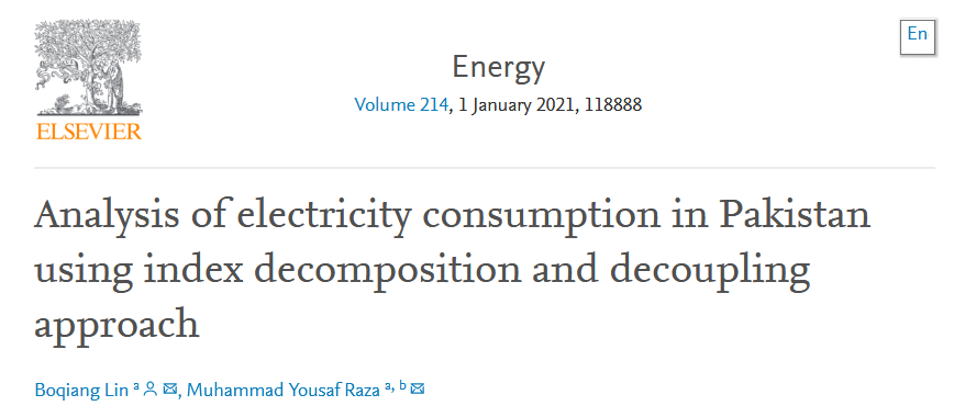 题目:用指数分解和解耦分析巴基斯坦电力消费(Analysis of electricity consumption in Pakistan using index decomposition and decoupling approach)