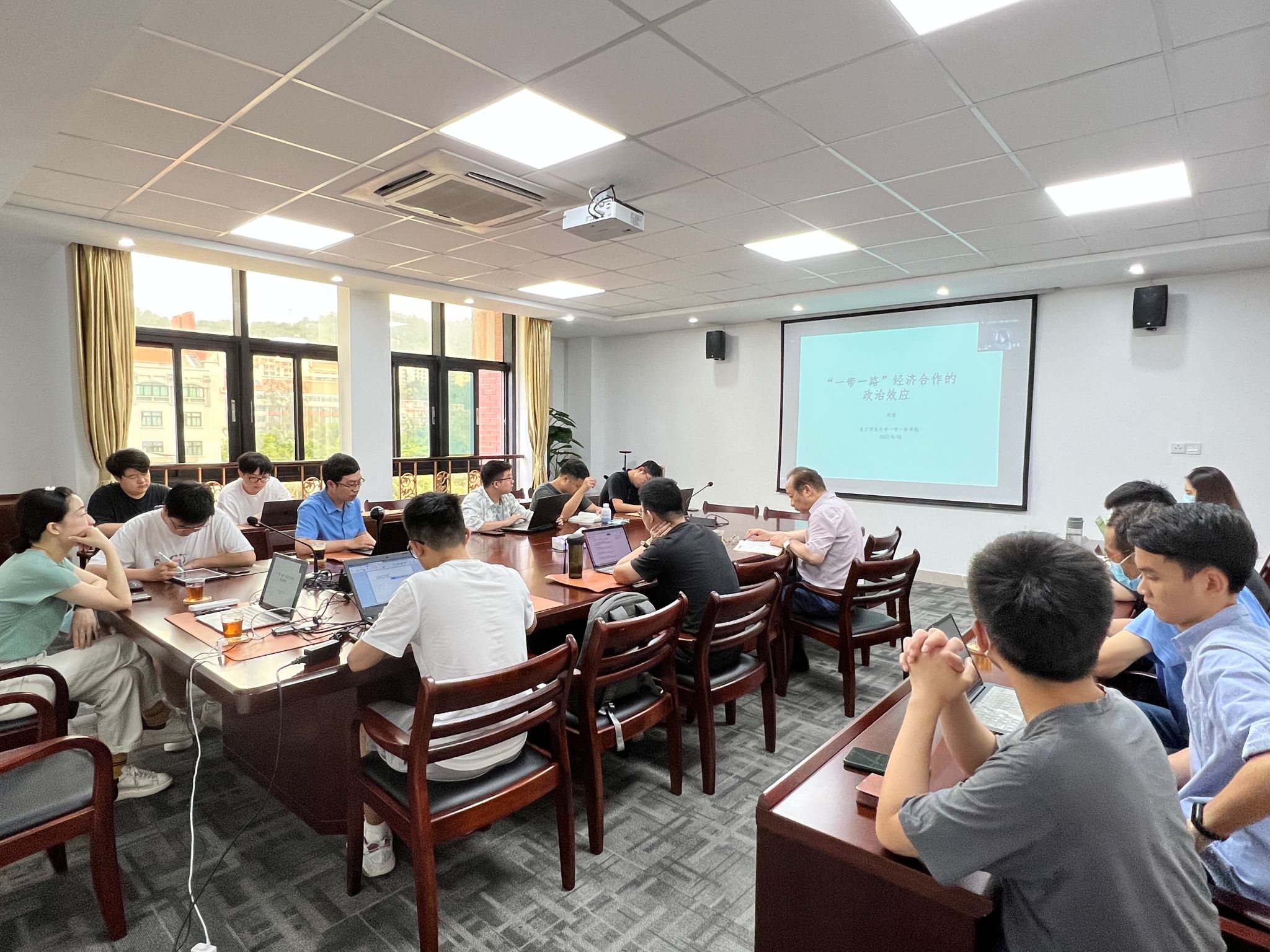 最后,刘老师分享了自己的学术心得与研究启示。在现场交流环节,大家就“中国的对外投资并非随机的,往往是有选择的,对于此类反向因果导致的内生性问题如何处理”和“来华留学生是否会对中国的认可度更高”等问题进行了热烈的讨论。此外,刘老师与陈武元教授就一带一路研究院建设、研究和跨学科平台考核制度、评价体系等问题进行了深入的交流,并就“一带一路”研究平台建设的意义和发展远景达成共识。“一带一路”建设是千年大计,两校的“一带一路”科研平台也都有很长的路要走,两位老师希望双方能够加强合作,互通有无,为高质量共建“一带一路”贡献高校智慧。