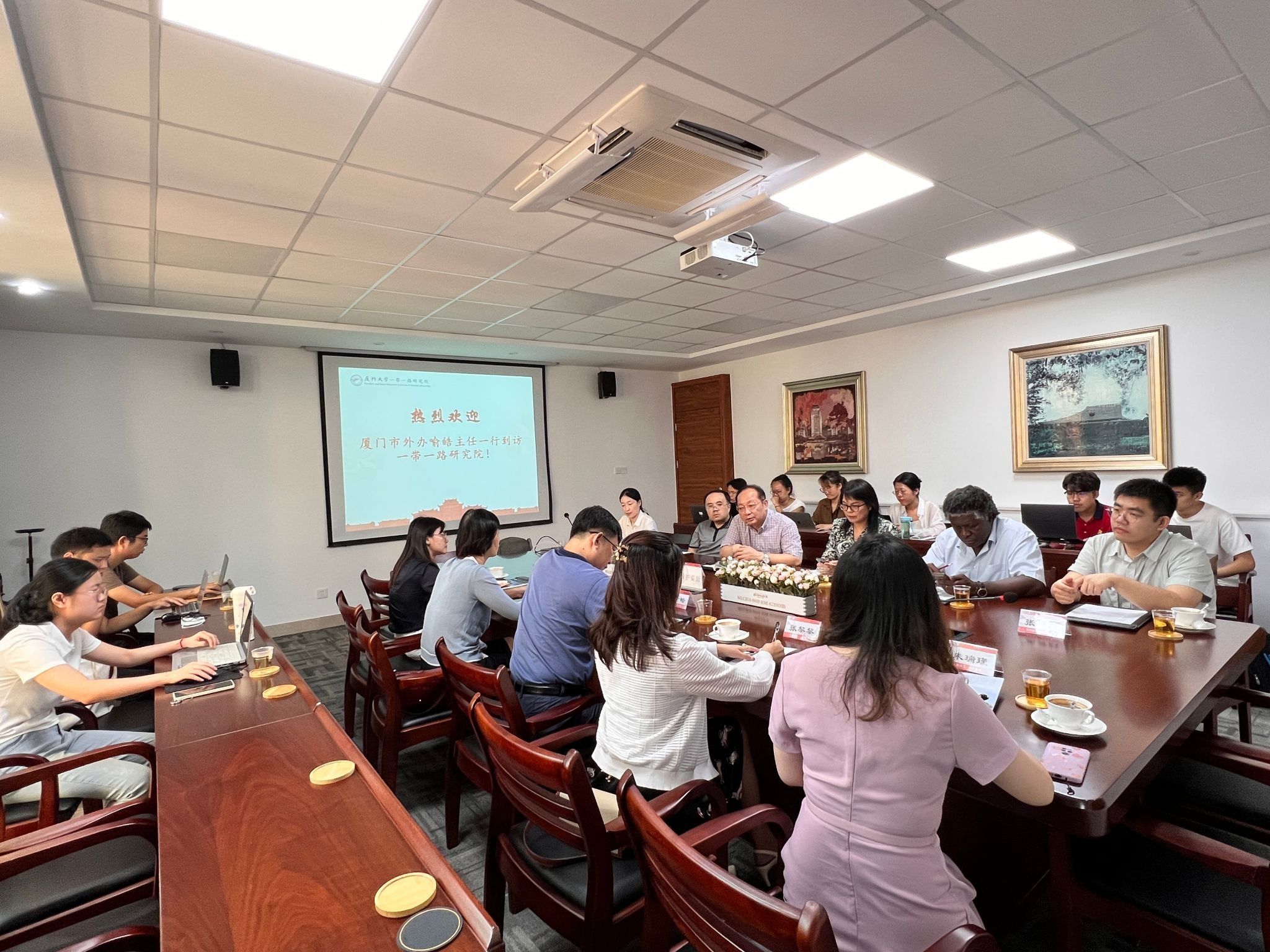 双方围绕碳中和与全球环境治理、新形势下厦门与友好城市卡迪夫的深化合作、厦门与欧非国家可行的经济文化交流合作、“一带一路”倡议与全球发展倡议的关系等问题,展开了深入交流与讨论。大家一致认为外事工作和“一带一路”研究有许多结合点,也有很大的合作空间。研究院作为高校智库,通过外事部门能更多触及中国面临或外界普遍关注的现实问题,外事部门通过高校智库的政策服务可以有针对性地开展外事活动、推动中外人文交流、夯实中外关系社会民意基础。