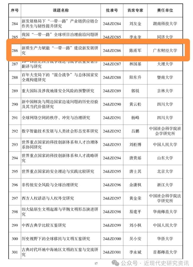 近日,全国哲学社会科学工作办公室公布了2024年度国家社科基金重大项目立项名单。厦门大学一带一路研究院兼职研究员陈甬军教授作为首席专家申报的“新质生产力赋能‘一带一路’建设新发展研究”获批立项。