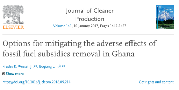 Keywords: Fossil fuel subsidies removal; Climate change mitigation; Macroeconomic indicators; Ghana