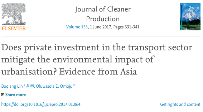 题目:运输部门的私人投资是否减轻了城市化对环境的影响?来自亚洲的证据(Does private investment in the transport sector mitigate the environmental impact of urbanisation? Evidence from Asia)