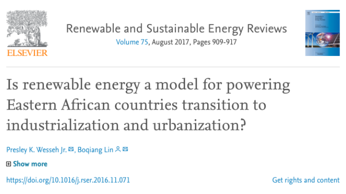 题目:可再生能源适合东非国家工业化和城市化进程吗?(Is renewable energy a model for powering Eastern African countries transition to industrialization and urbanization?)