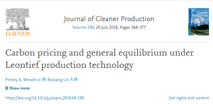 文章采用Leontief生产模型,并结合可计算的全球贸易一般均衡模型,定量测度碳排放缓解政策对社会福利和环境绩效的影响。实证分析的一个关键环节是,计算环境外部性完全内生化的最优碳税。文章指出,Leontief生产技术假定投入和排放之间是无法进行替换的,只有通过改变技术才能减排。