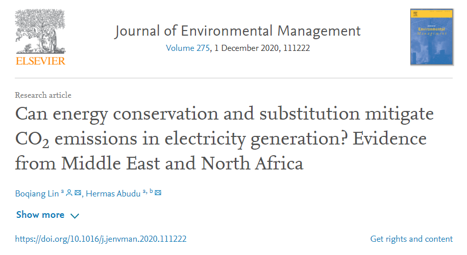 题目:节能行为和能源替代可以减少电力部门的CO2排放吗?来自中东和北非的证据(Can energy conservation and substitution mitigate CO2 emissions in electricity generation? Evidence from Middle East and North Africa)